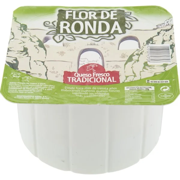El queso fresco Flor De Ronda de cabra contiene un 60% de materia grasa.