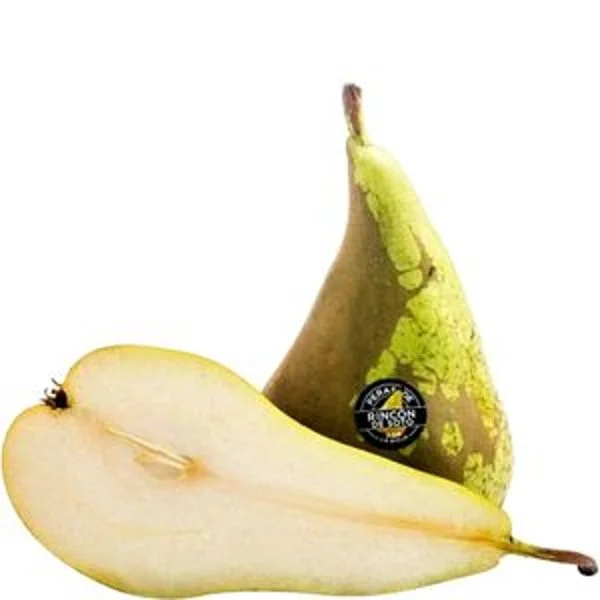 El producto se describe como Pera Conferencia Suprema fresca y a granel, ideal para el consumo.