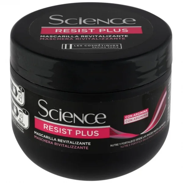 0.3 lMascarilla capilar revitalizante Resist Plus con arginina cabellos frágiles Science Les Cosmétiques 300 ml.