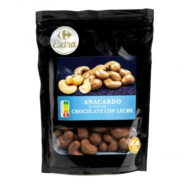 0.15 kgAnacardos bañados en chocolate con leche Carrefour Extra sin gluten doy pack 150 g.