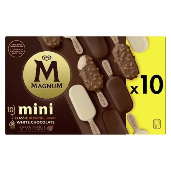 10.07 udMini bombón helado clásico, almendras y chocolate blanco Magnum sin gluten 10 ud.
