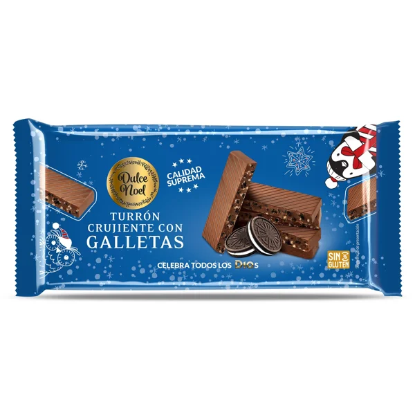 El producto se llama Turrón crujiente de chocolate con galletas Dulce Noel Dia bolsa 150 g.
