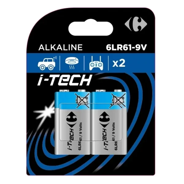 2 udPilas Alcalinas Carrefour Itech 9V I44/ 6LR61, paquete 2