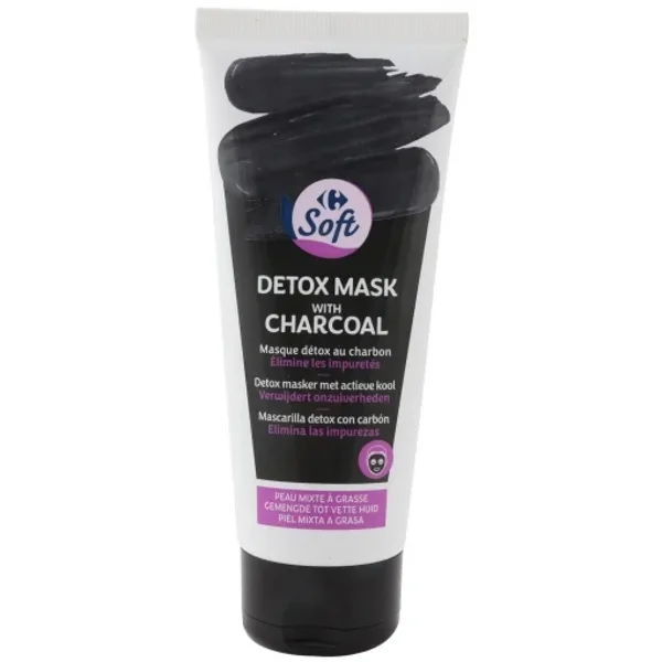0.1 lMascarilla facial détox con carbón piel mixta a grasa Carrefour Soft 100 ml.
