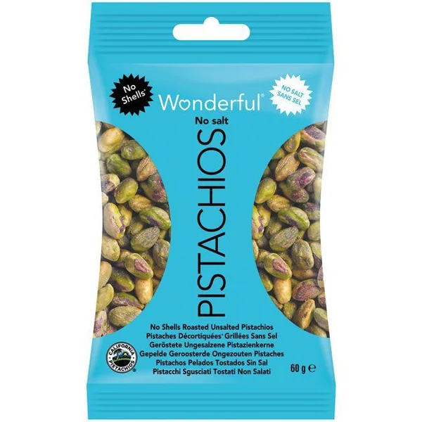 1 udPistachos pelados tostados sin sal WONDERFUL, bolsa 60 g