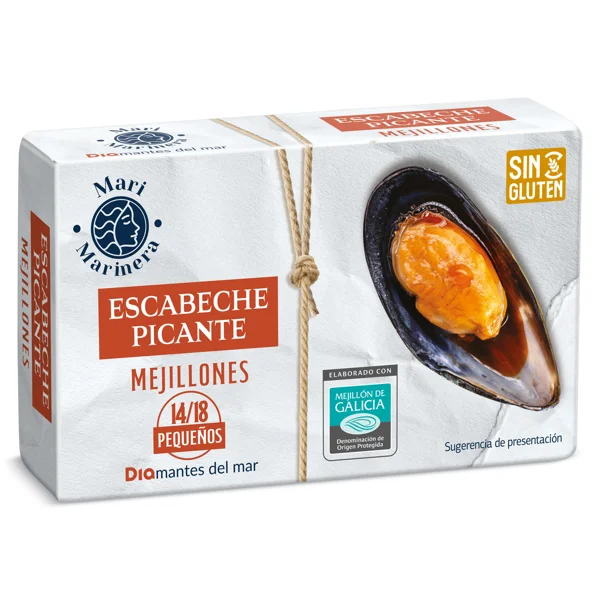 0.07 kgMejillones en escabeche picantes 14/18 piezas Mari Marinera de Dia lata 69 g