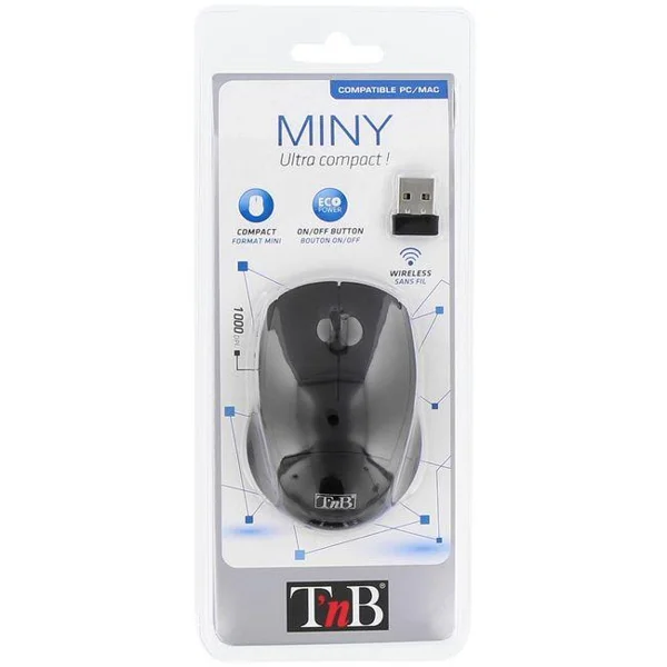 1 udRatón óptico inalámbrico negro, Miny TNB