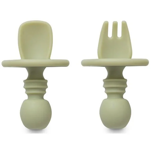 2 udCubiertos de aprendizaje verde agua antiahogo de silicona INTERBABY, set 2 uds