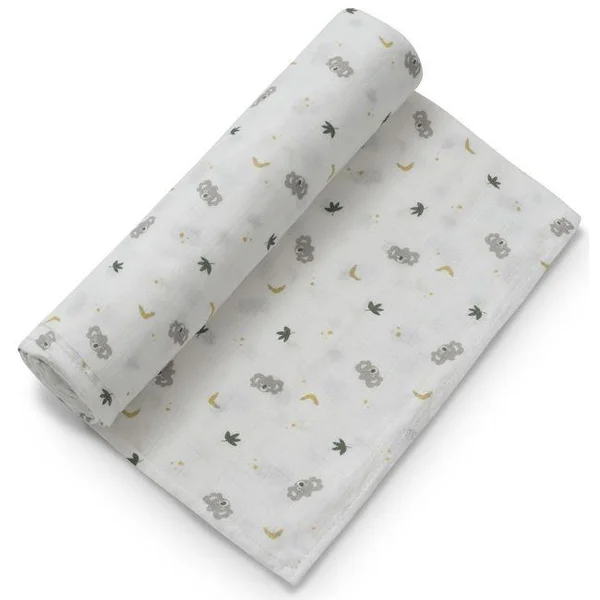 144 mMuselina de bambú natural blanco estampado koala platano INTERBABY, 120x120 cm