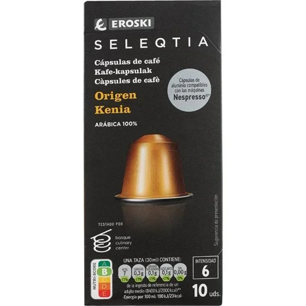 1 kgCafé Kenya compatible Nespresso EROSKI SELEQTIA, caja 10 uds
