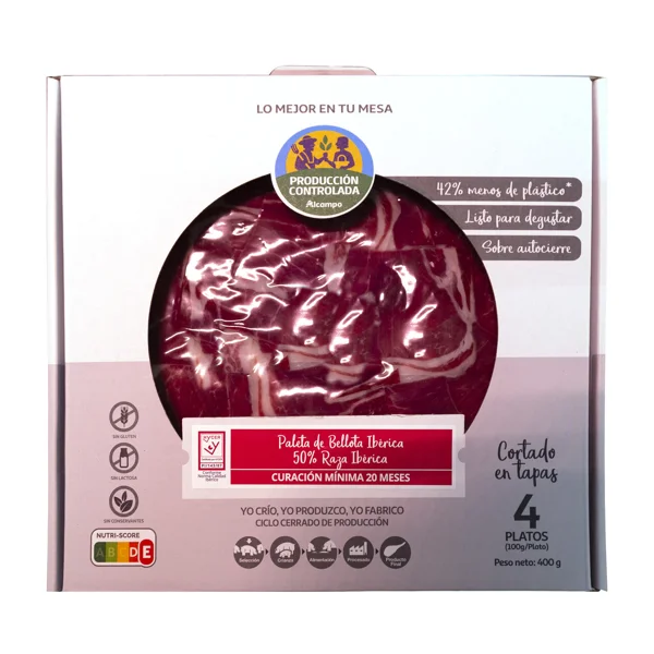 0.4 kgALCAMPO CULTIVAMOS LO BUENO Paleta de bellota ibérica (50% raza ibérica) cortada en tapas 4 sobres de 100 g.