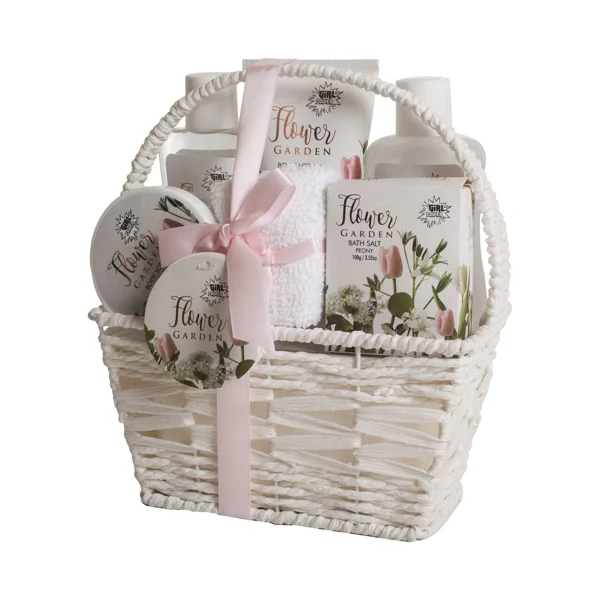 1 udGIRL POWER Flower garden Cesta con asa con productos con aroma a peonia para el cuidado y la higiene corporal.