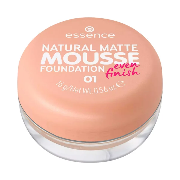1 udESSENCE Natural matte mousse tono 01 Base de maquillaje mousse, cobertura media, aspecto mate natural.