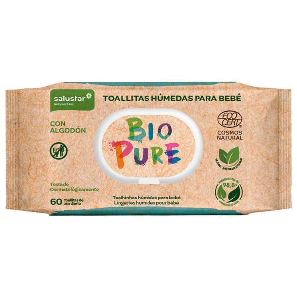 1 udSALUSTAR Toallitas humedas para bebé, con algodón y dermatológicamente testadas SALUSTAR Bio pure 60 uds.