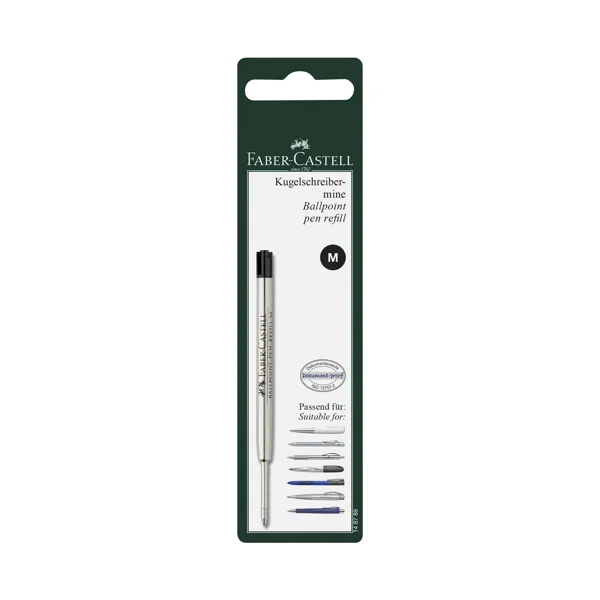 1 udRecambio universal con punta de grosor medio, con tinta con base de aceite de color negro y escritura extra suave FABER CASTELL.