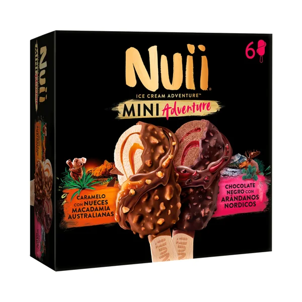 El NUII Mini helados de caramelo con nueces Macadamia (3) y de arándanos nórdicos (3), recubiertos de chocolate 6 x 55 ml. está disponible en el supermercado alcampo. Su precio actual es de 3.55€, lo que lo convierte en una opción de gama media para su categoría. Descubre si este producto es la mejor opción para ti.