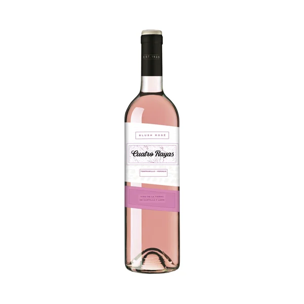 1 udCUATRO RAYAS BLUSH ROSÉ Vino rosado con D.O. Vino de la Tierra de Castilla y León CUATRO RAYAS Blush rosé botella de 75 cl.