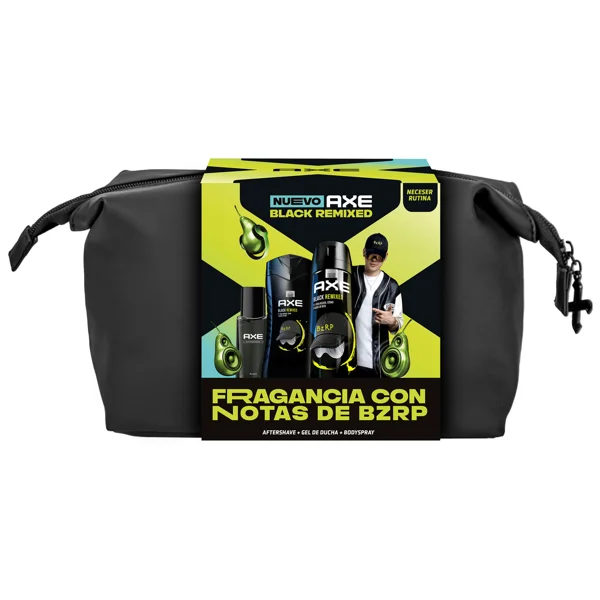 1 udAXE Black remixed by BZRP Neceser con cierre de cremallera con productos para la higiene masculina.