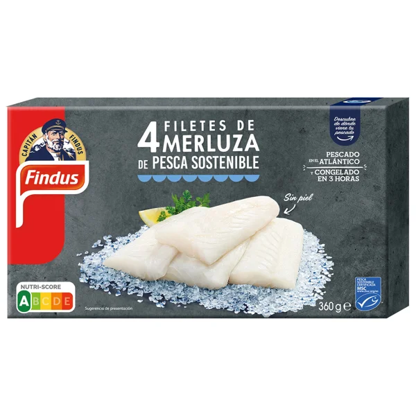 0.36 kgFINDUS Filetes de merluza sin piel, procedentes de MSC (pesca sostenible certificada) FINDUS 360 g.