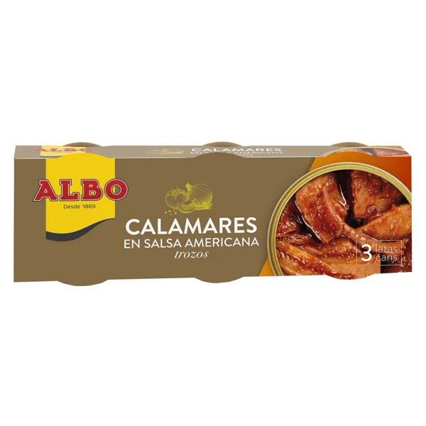 0.2 kgALBO Calamares en salsa americana en trozos lata de 3 uds x 65 g.