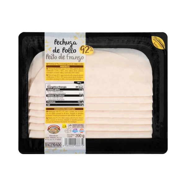 0.2 kgPechuga de pollo 92% Hacendado lonchas