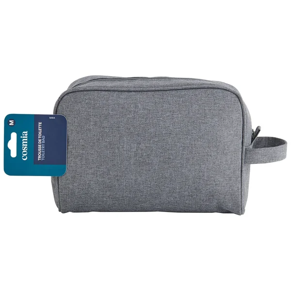 1 udCOSMIA Neceser para hombre de color gris y tamaño mediano, con asa y cierre de cremallera.