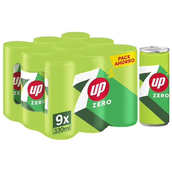 2.97 lSEVEN UP Zero Refresco con sabor a lima-limón, sin azúcar pack 9 latas x 33 cl.