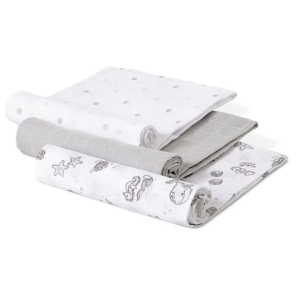 1 udPack de 3 gasas, pañales de tela, diseño marino, color grisáceo, INTERBABY.