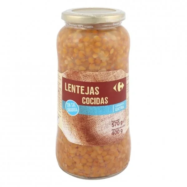La denominación 'categoría extra' indica que las lentejas cocidas Carrefour cumplen con los estándares de calidad más altos, seleccionando lentejas de excelente calidad.