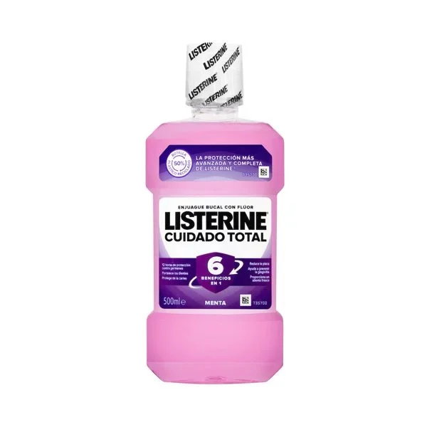 Listerine Cuidado Total ayuda a combatir la placa, proteger contra las caries, refrescar el aliento y mantener las encías sanas.