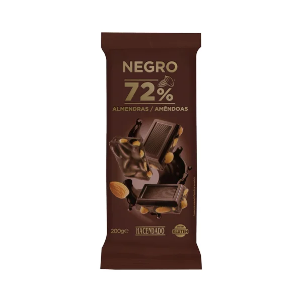 0.2 kgChocolate negro 72% de cacao Hacendado con almendras enteras