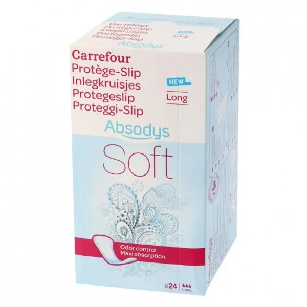 Los protegeslips Absodys Discret Carrefour Soft ofrecen protección contra las fugas y están diseñados para ser discretos y cómodos.